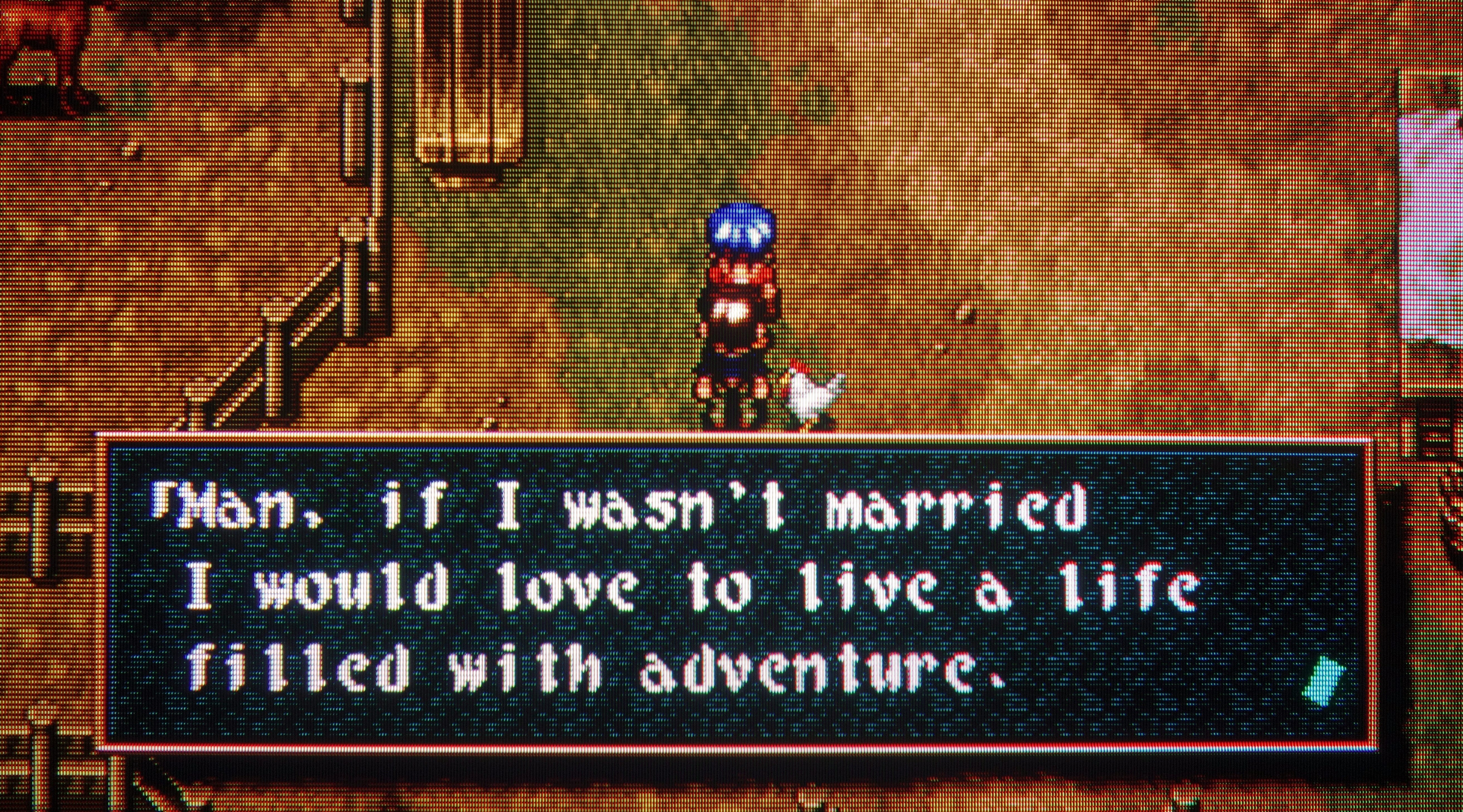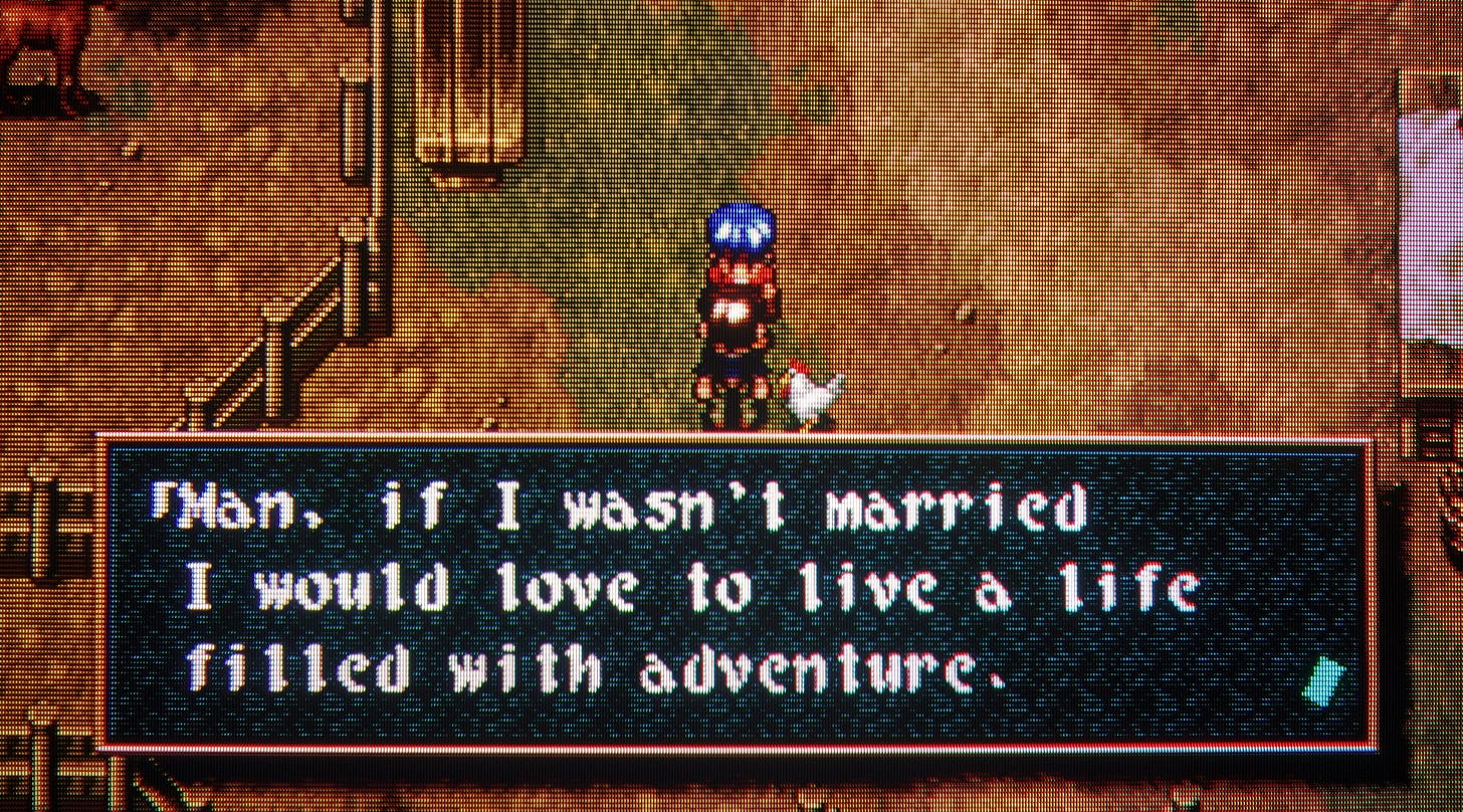 out in a new one (Wild Arms in this case), enjoy the tranquil time nosing around the farm, bothering the chickens and trying to converse with horses, and out of the blue a chap comes out with a heavy-duty existential dilemma like this one.