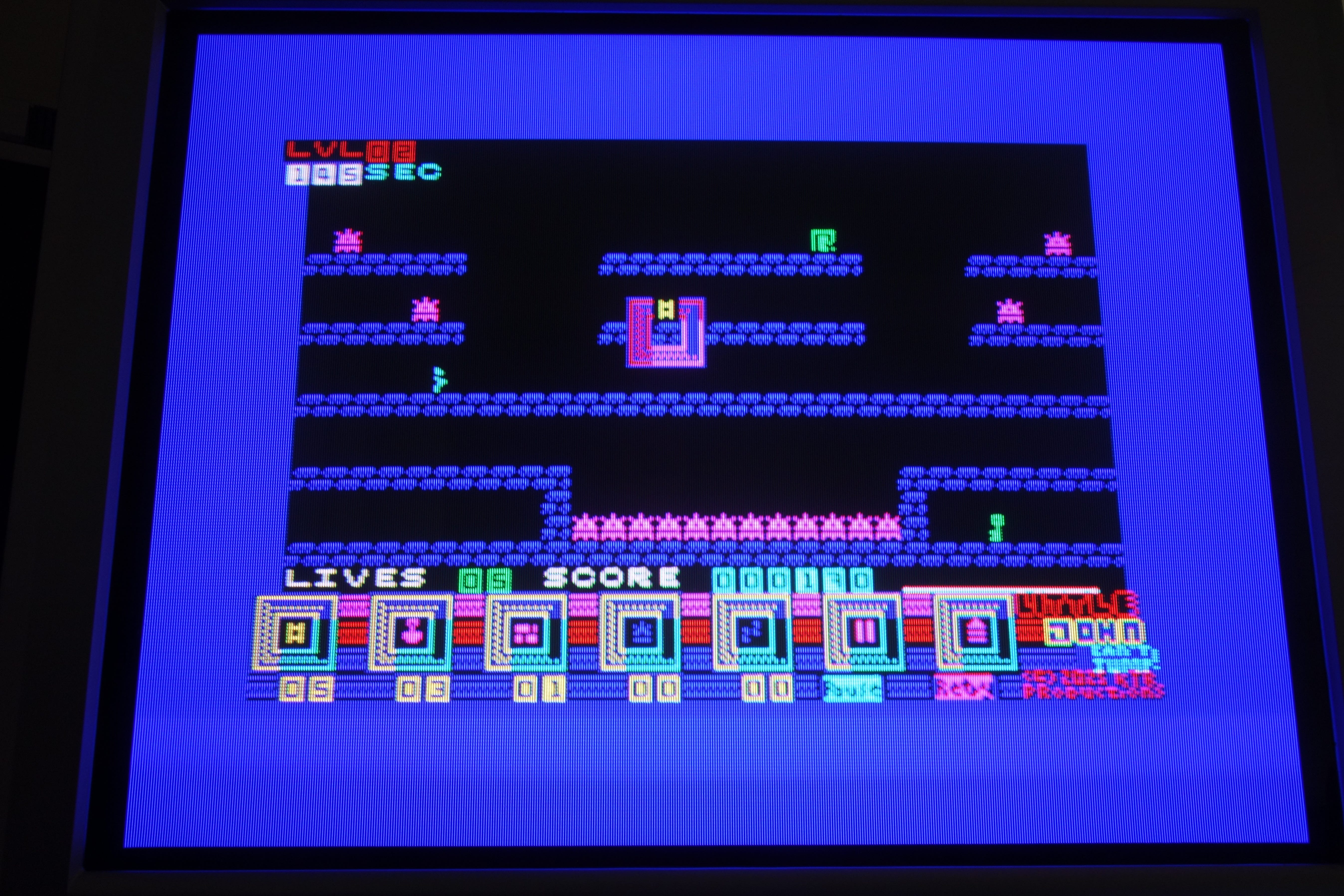 The gameplay is simpler than in Lemmings, because you only have to guide Little John, not a bunch of lemmings, but the concept is similar. As we know already, he can’t jump, and there’s no direct control, so you have to help him reach the level-ending doorway by means of placing ladders, brick blocks, digging holes, and using mines / sleeping powder against hostile robots (…wait…robots can sleep? Ah, videogame logic…).